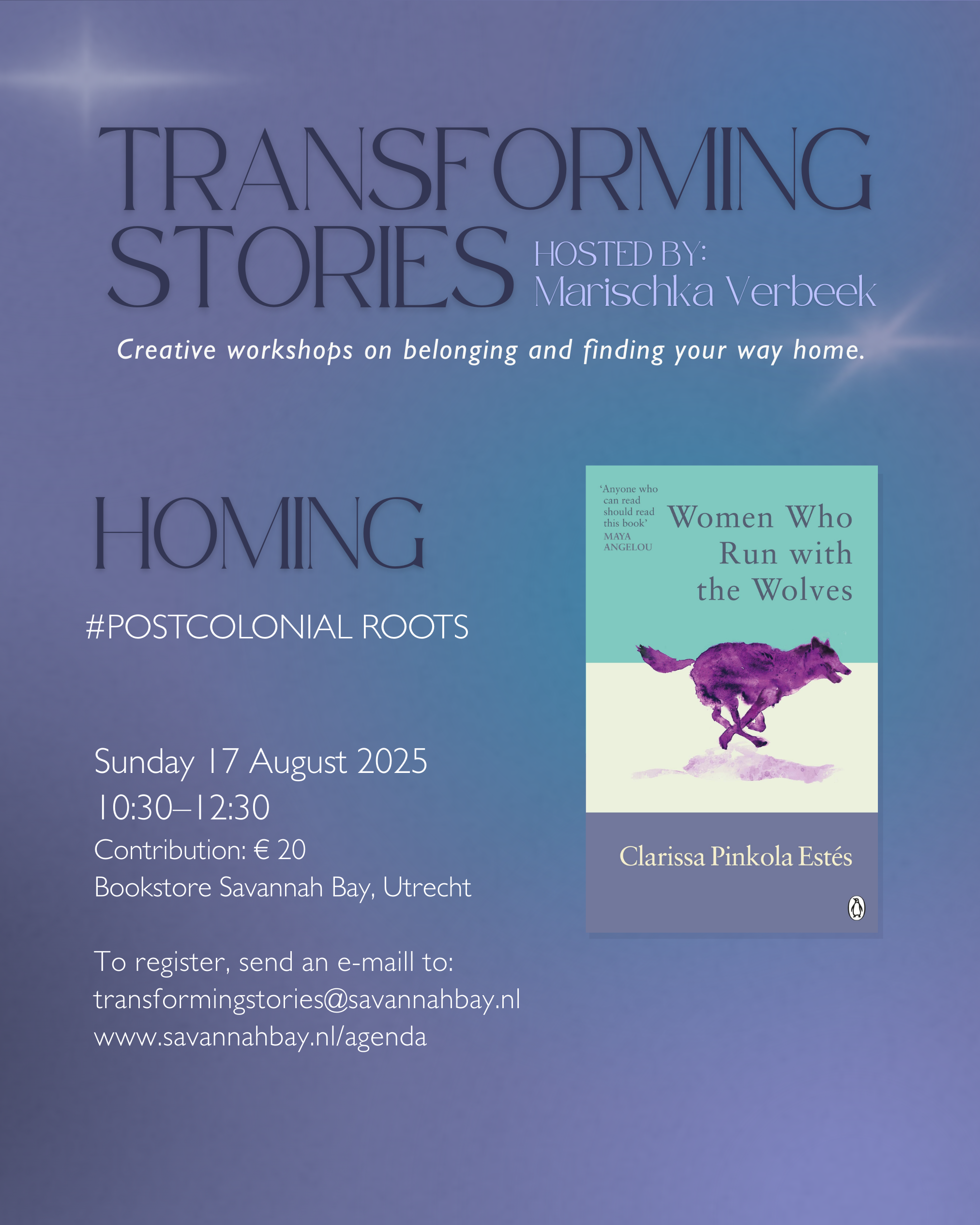 Join Marischka Verbeek Sunday August 17th, for the 5th edition in her series creative workshops, inspired by the book Women Who Run with the Wolves by Clarissa Pinkola Estes. The theme of this August edition is #Homing.