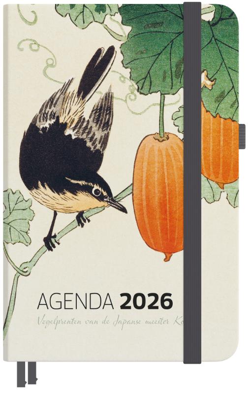 Met deze compacte en fraai vormgegeven jaaragenda in je zak voel jij je het hele jaar zo vrij als een vogel. De agenda bevat jaarkalenders voor 2026 en 2027, per maand een invulbare maandkalender, notitiepagina’s, in te vullen bucketlists voor 2026, voldoende ruimte om afspraken te noteren, een documentenvakje, twee leeslinten, pennenlus en een sluitelastiek. Bovendien ontvang je vier ansichtkaarten met vogelprenten bij deze agenda. Agenda 2026 Door de agenda heen staan meer dan 50 vogelprenten van de Japanse meester Koson afgebeeld. Veel van de vogelprenten van Koson zijn opgenomen in de collectie van het Rijksmuseum in Amsterdam. Specificaties: + Compact formaat en dus handig mee te nemen: 125 x 175 mm + Hardcover met extra matte laminaatlaag voor luxe uitstraling en optimale duurzaamheid + pennenlus, twee leeslinten & sluitelastiek + vakje voor losse documenten + twee pagina's per week + iedere maand een invulbaar maandoverzicht + feestdagen & schoolvakanties + looptijd: 29 december 2025 t/m 10 januari 2027 + notitiepagina's & invulbare bucketlists voor 2026 + EXTRA: vier ansichtkaarten met fraaie vogelprenten Compact formaat Deze agenda is makkelijk mee te nemen. Het formaat is 125 x 175 mm en de dikte van de agenda is 15 mm. Luxe uitvoering De agenda is luxe uitgevoerd. Zo heeft de agenda een hardcover omslag en is het binnenwerk genaaid gebonden. Bovendien is de omslag voorzien van een extra laminaatlaag. Dit geeft niet alleen een luxe uitstraling, maar dit garandeert ook een maximale duurzaamheid, ook bij veelvuldig gebruik. Leeslinten, pennenlus en sluitelastiek De complete uitvoering van deze agenda blijkt verder uit de twee leeslinten en het stevige sluitelastiek. Je pen kun je eenvoudig aan de agenda vastmaken met de pennenlus.