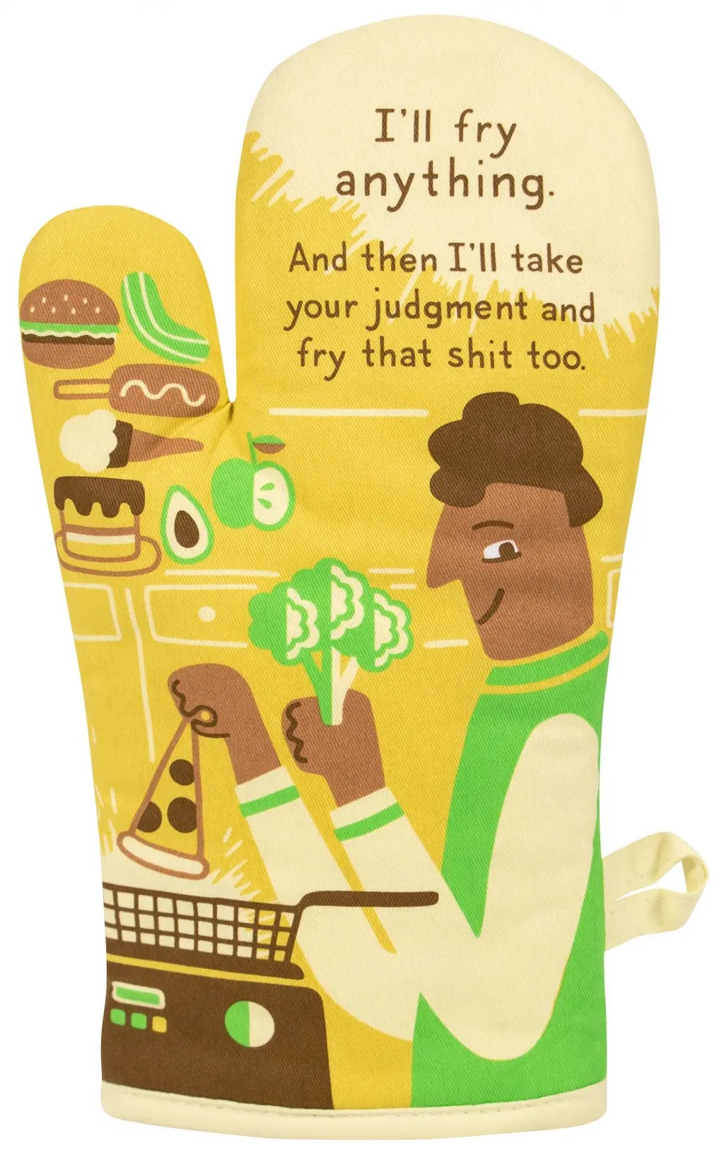 De Blue Q Ovenwanten van kantoen hebben een super leuk dessin en een comfortabele pasvorm. De binnenkant heeft een extra gewatteerde isolatie, zodat je handen koel blijven. De buitenkant heeft een vintage geïnspireerd tafereel in zeefdruk in rijke kleuren. 1% van de verkoop van Blue Q ovenwanten wordt gedoneerd aan hongerhulpprogramma's over de hele wereld.