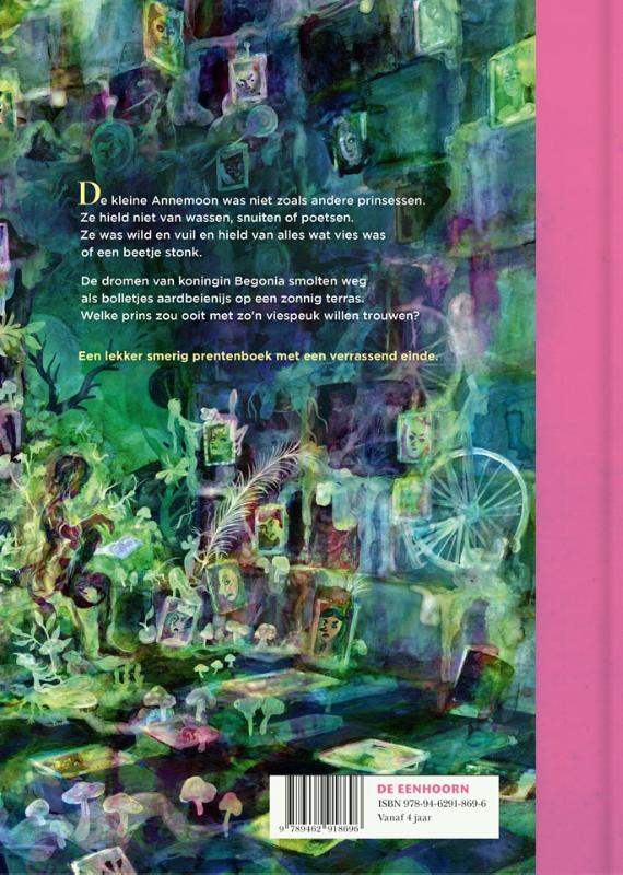 Prinses Annemoon hield niet van schoon. Ze poetste vaak haar tanden niet, liet vuile vegen op haar gezicht of droeg een hele week dezelfde onderbroek. Na een tijdje stopte ze met haar haren te kammen en haar handen te wassen. Etensresten bleven overal in kleven en de grootste brokken schudde ze eruit voor haar hond. Op een dag klopte iemand op de deur van het kasteel … Oh nee, dacht Prinses Annemoon. Niet weer zo’n saaie prins die met haar wilde trouwen. Maar het bleek ridder Bertilde te zijn, die blij is om eindelijk een prinses te ontmoeten die niet ruikt naar bloemenweiden of Fruittella. Is de liefde wederzijds?