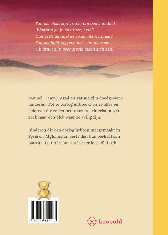 Samuel, Tamar, Azad en Fatima zijn doodgewone kinderen. Tot er oorlog uitbreekt en ze alles en iedereen die ze kennen moeten achterlaten. Op zoek naar een plek waar ze veilig zijn. In dit voorleesboek beschrijft Martine Letterie het leven van vier kinderen die met hun familie moesten vluchten voor oorlog en geweld. Ze baseerde de verhalen op gesprekken met kinderen uit Syrië en Afghanistan.