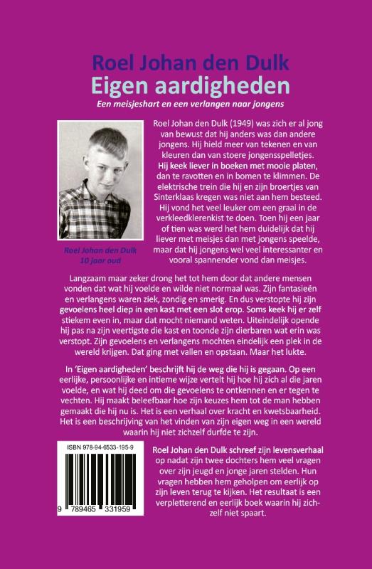 Roel Johan den Dulk (1949) was zich er al jong van bewust dat hij anders was dan andere jongens. Hij hield meer van tekenen en van kleuren dan van stoere jongensspelletjes. Hij keek liever in boeken met mooie platen, dan te ravooen en in bomen te klimmen. De elektrische trein die hij en zijn broertjes van Sinterklaas kregen was niet aan hem besteed. Hij vond het veel leuker om een graai in de verkleedklerenkist te doen. Toen hij een jaar of en was werd het hem duidelijk dat hij liever met meisjes dan met jongens speelde, maar dat hij jongens wel veel interessanter en vooral spannender vond dan meisjes.