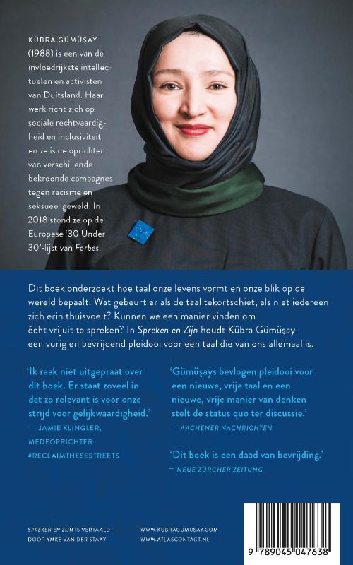 Schrijfster en activiste Kübra Gümüsay volgt in ‘Spreken en zijn’ een verlangen: naar een taal die mensen niet tot categorieën reduceert. Naar een manier van spreken die mensen in staat stelt te bestaan in al hun verscheidenheid. In dit zowel scherpe als sprankelende boek onderzoekt ze hoe taal ons denken vormt en onze politiek bepaalt. Hoe kunnen mensen – in een tijd van steeds hardere en haatdragendere taal – beter met elkaar communiceren? Gümüsay daagt ons uit om ons taalgebruik opnieuw te onderzoeken, want onze taal vormt onze wereld.